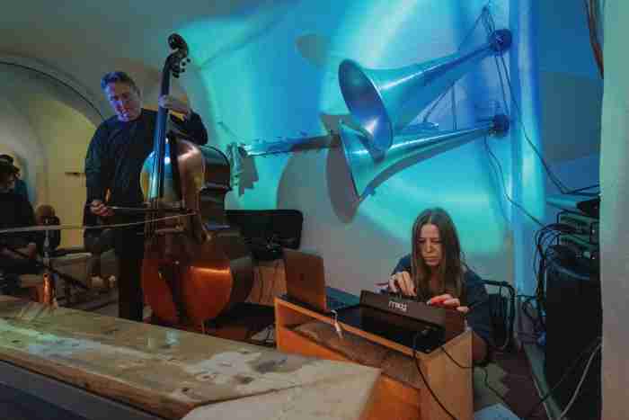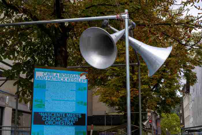 Zur Weiterentwicklung von Nascente" arbeitet Carla Boregas seit 2024 mit dem Appenzeller Kontrabassisten Patrick Kessler und seinem Chuchchepati Orchestra zusammen. Gemeinsam präsentieren Boregas und Kessler „Nascente - Fluxo Inverso“, eine Installation und Performance in drei Akten. Fluxo Inverso“ (dt. Umgekehrter Fluss) kann als Metapher verstanden werden, in der die natürliche Dynamik der Dinge verändert oder umgekehrt wird und sich dem erwarteten Verlauf der Ereignisse widersetzt. Anstatt sich ständig vorwärtszubewegen, ist es manchmal auch notwendig, zurückzugehen, zu überprüfen und neu zu überdenken. Wie ein Bach, der zu seiner Quelle zurückkehrt. Klänge, Geräusche und Töne brodeln, sprudeln, kochen auf und kühlen ab, und die Wechselwirkungen zwischen Orchester, Lautsprechern und Publikum werden zu einem horizonterweiternden kollektiven Hör- und Seherlebnis.