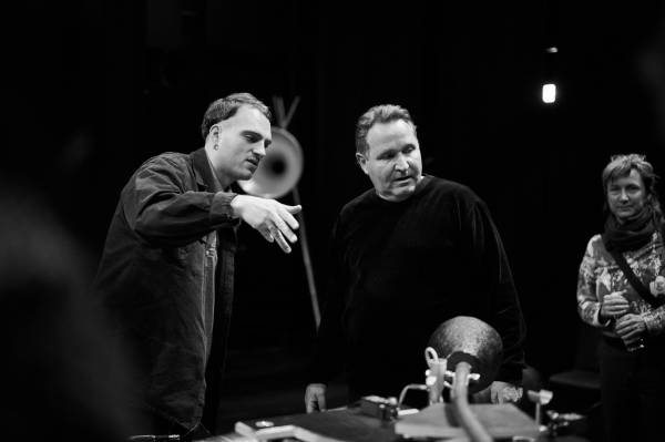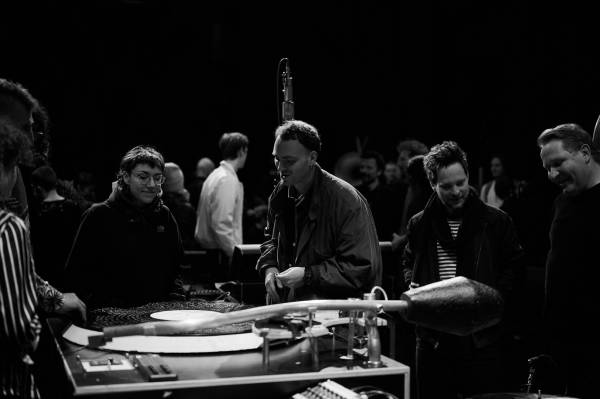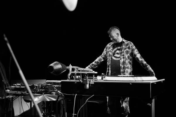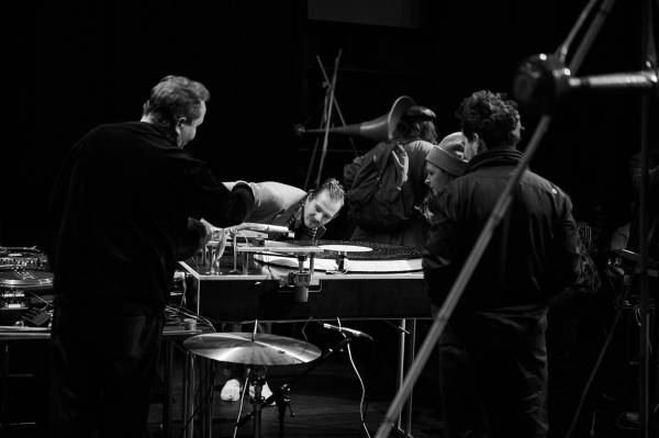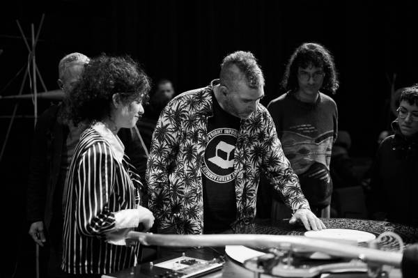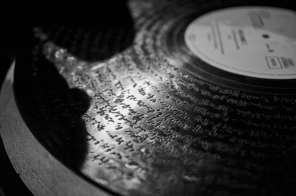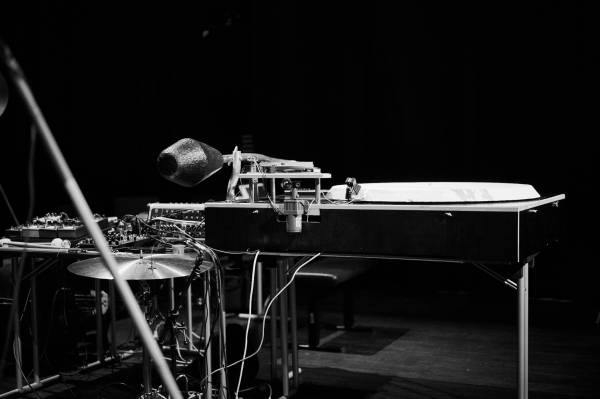 "Der Makrograph" is a giant turntable on which sound carriers with a diameter of 33⅓ inches (82.9 cm) of very different materiality and surface texture can be "played".